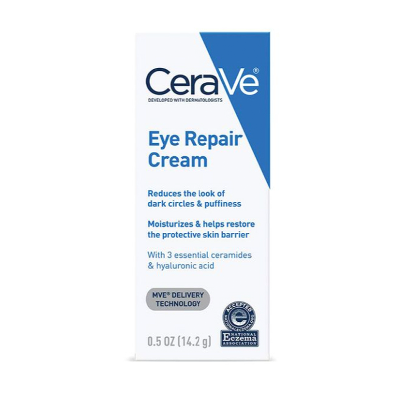 CeraVe Eye Repair Cream is ophthalmologist-tested and features a non-greasy, fast-absorbing, fragrance-free formula that works to minimize the appearance of dark circles and eye puffiness. It’s formulated with three essential ceramides, hyaluronic acid, niacinamide, and a Marine & Botanical Complex to help brighten your entire eye area. Plus, MVE technology continually releases moisturizing ingredients for all-day hydration. Directions for Use: Apply CeraVe Eye Repair Cream in small dots around your eye area Gently smooth around your eye area until thoroughly absorbed Use eye cream once or twice a day, in the A.M. and/or P.M., alone or under makeup