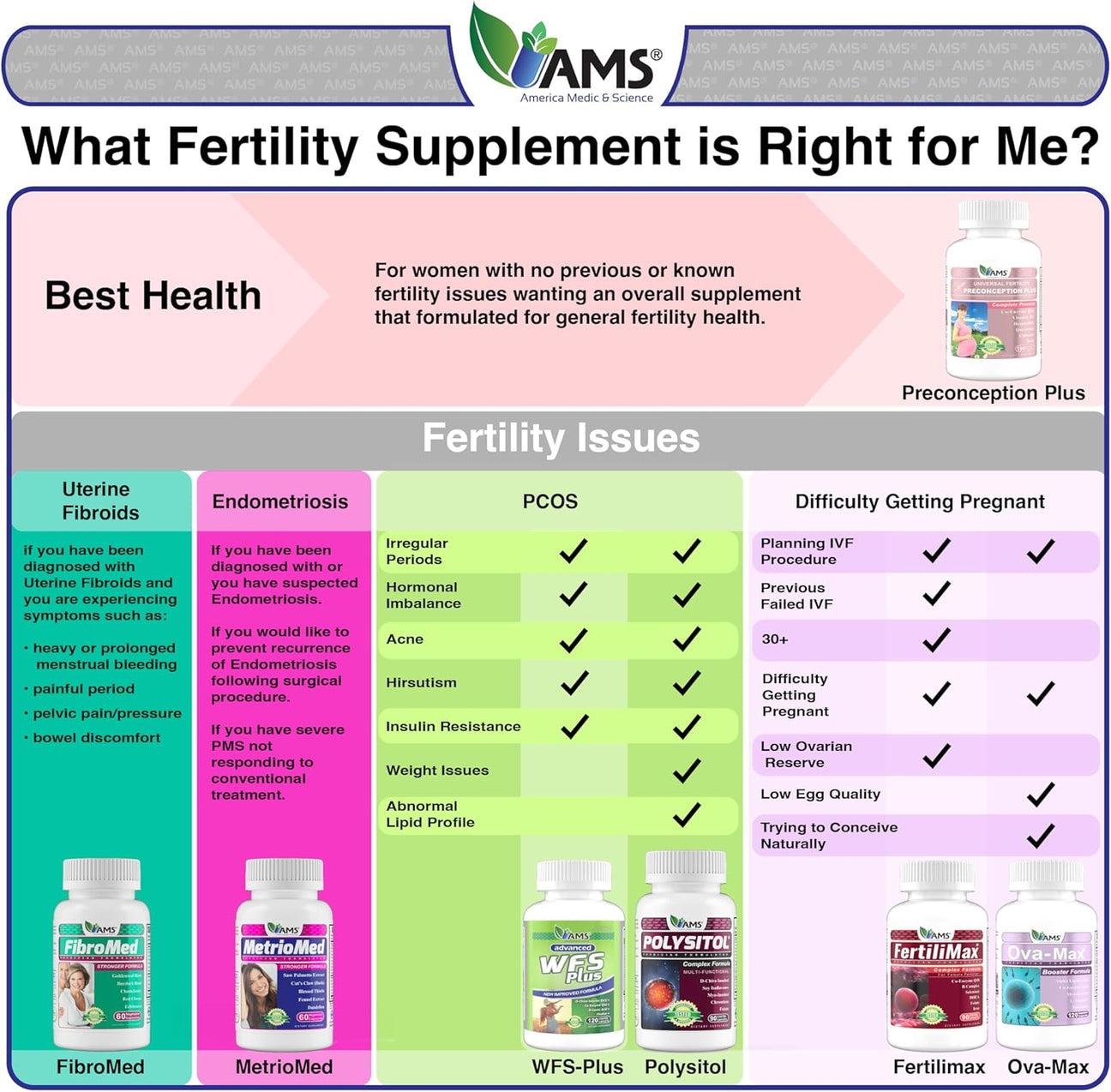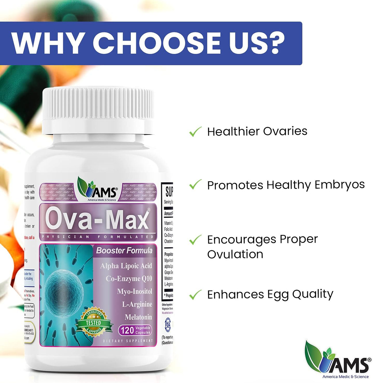 AMS® Ova-Max is a natural blend of vitamins, minerals and antioxidants which work together to improve women’s egg and embryo quality by strengthening the antioxidant defense mechanism thus preventing oxidative stress. The egg quality is a vital component in the success rate of couple’s trying to conceive.