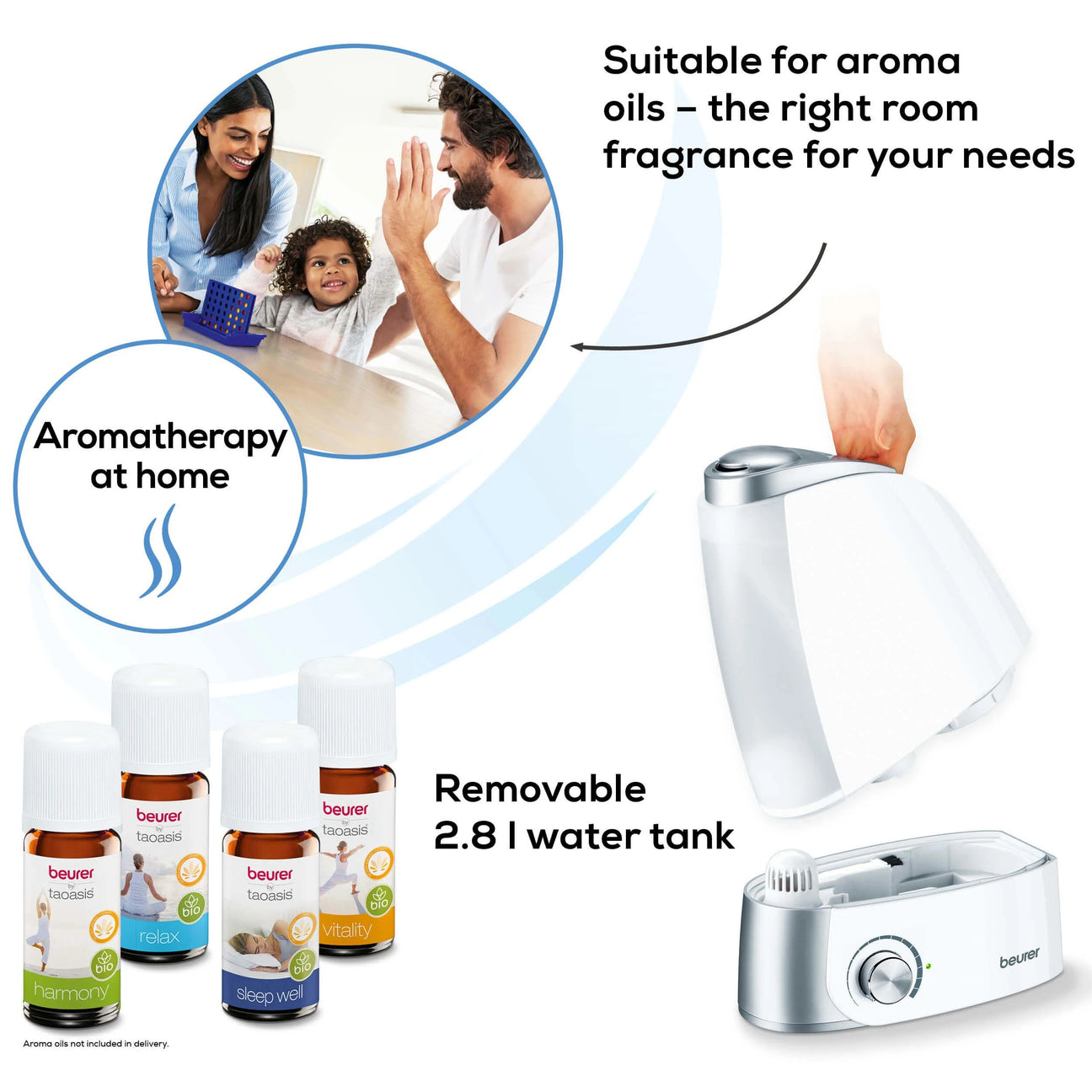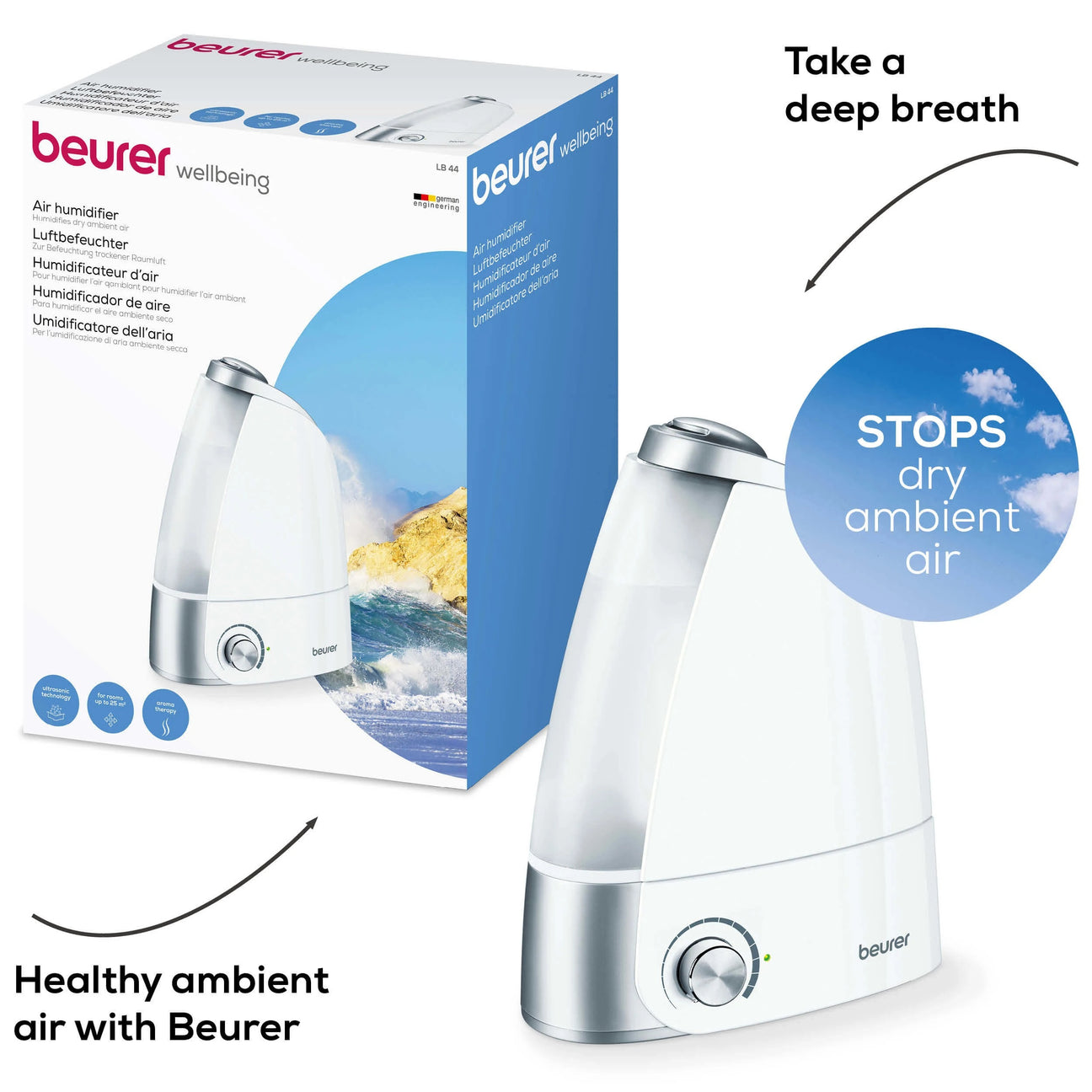 The ultrasound humidification technology of the air humidifier ensures an optimum relative air humidity in your home.