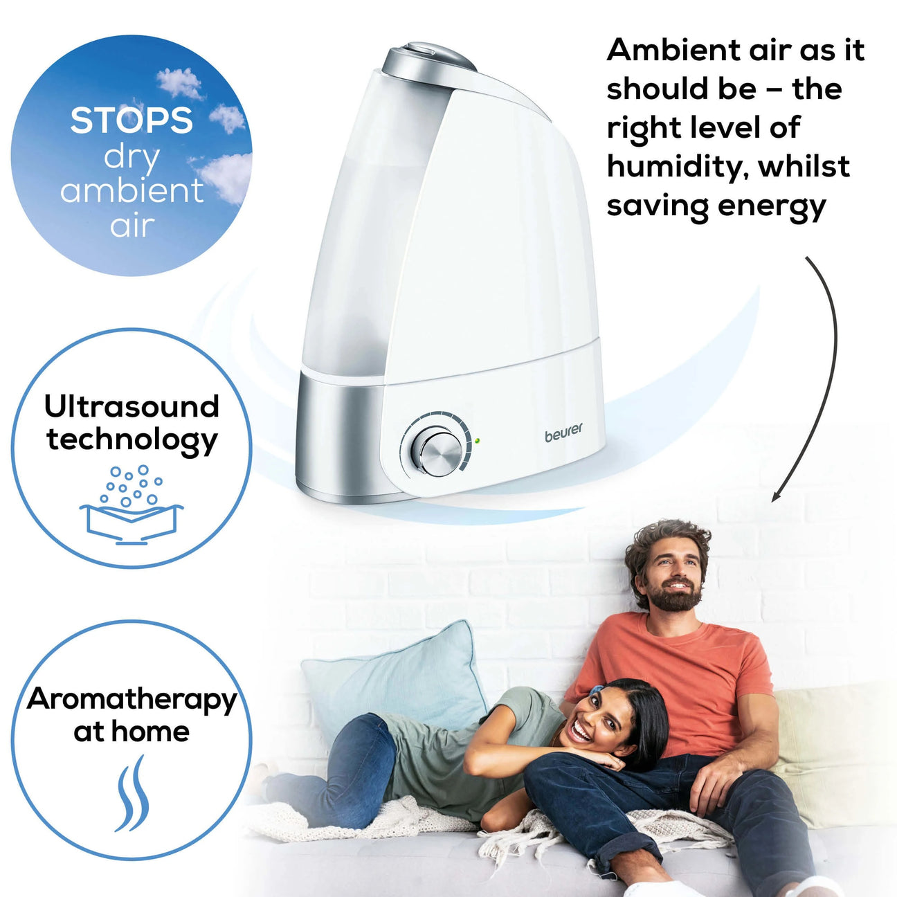 With ultrasound humidification technology: energy-efficient and quiet