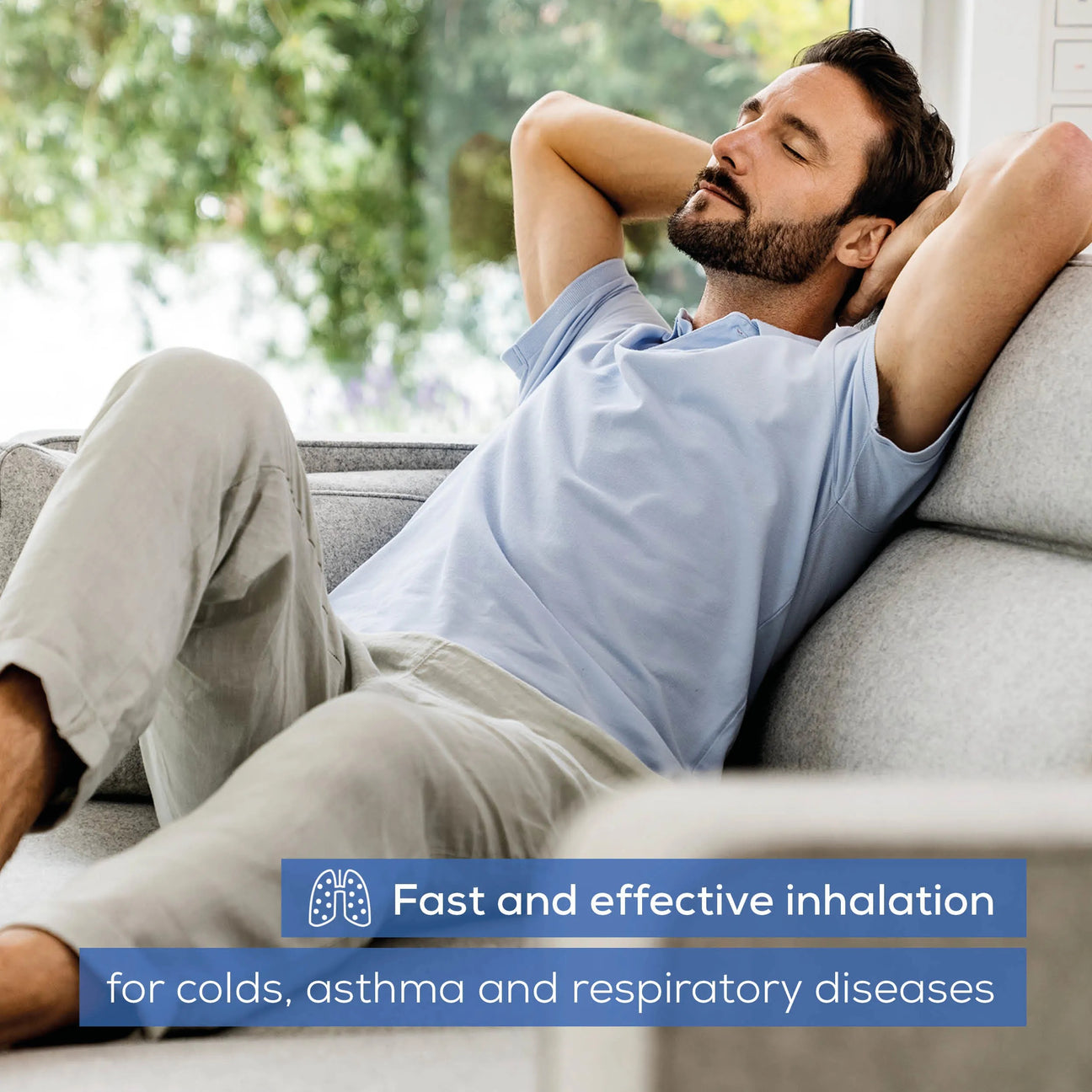 Small, light and ultra quiet, the nebuliser is the ideal companion for treating the upper and lower airways as well as colds, asthma and respiratory diseases when travelling
