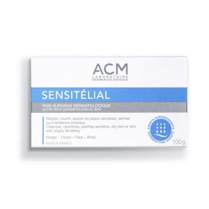 Thanks to its gentle, soap-free cleansing agents, the ultra rich Sensitelial dermatological bar cleanses the skin without attacking it, while respecting the hydrolipidic film. Enriched with moisturizing and lipid-restoring active agents, it prevents dryness, softens and nourishes the skin to limit the sensations of tightness and restores comfort and suppleness.