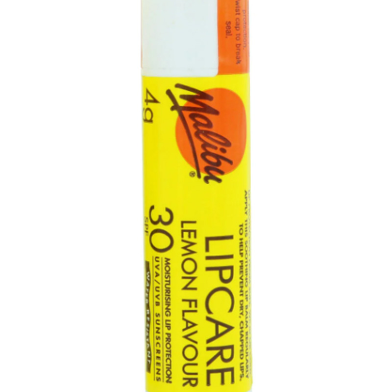 Malibu Lip Balm SPF 30 in Lemon provides nourishing hydration and sun protection for your lips. This compact 5g balm offers broad-spectrum UV protection while leaving a refreshing citrus flavor. Ideal for everyday use, it's perfect for outdoor activities, keeping your lips soft, smooth, and shielded from the sun.